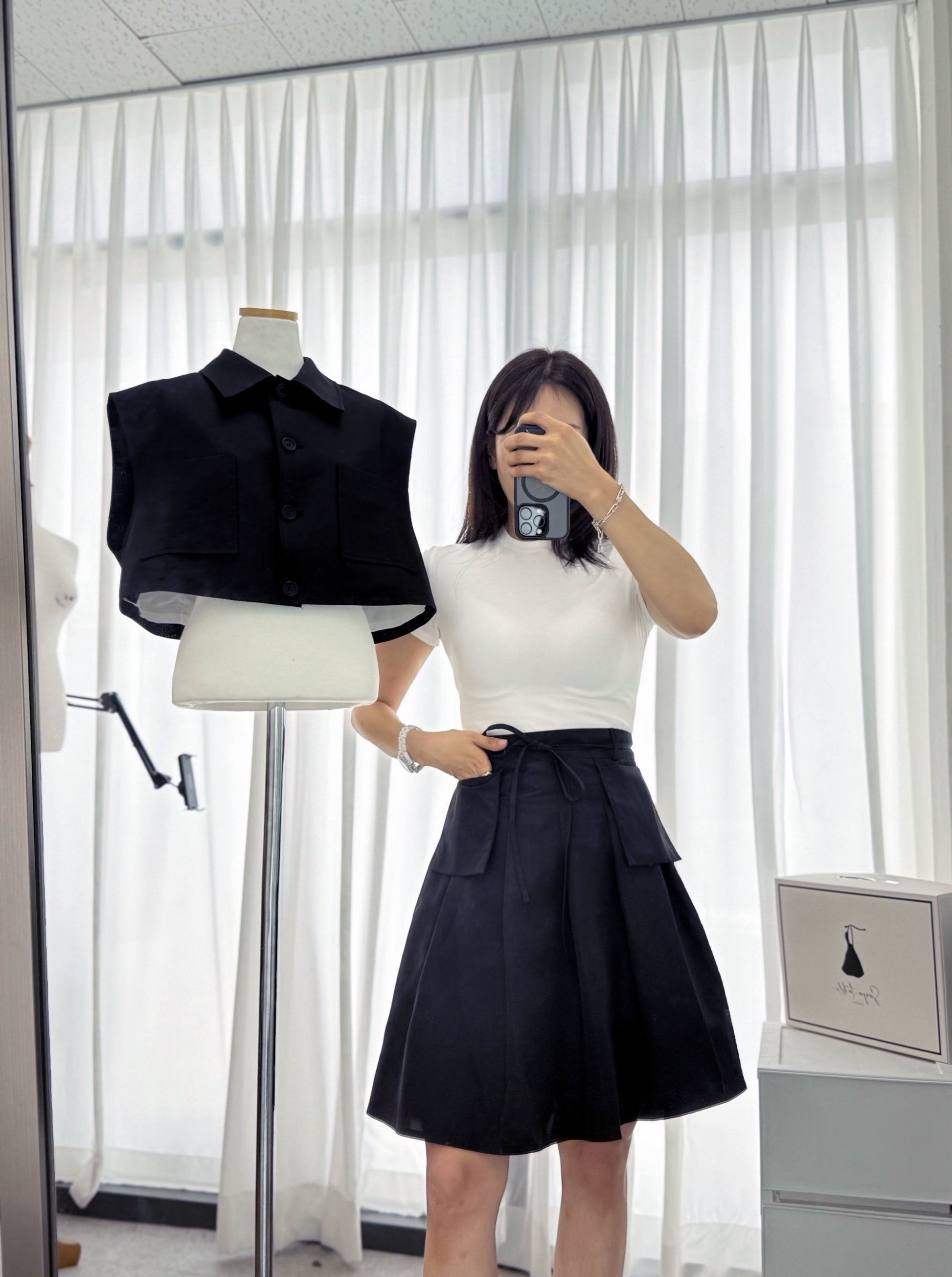 - abundant pleating in the skirt to cinch the waist and create an elegant silhouette.